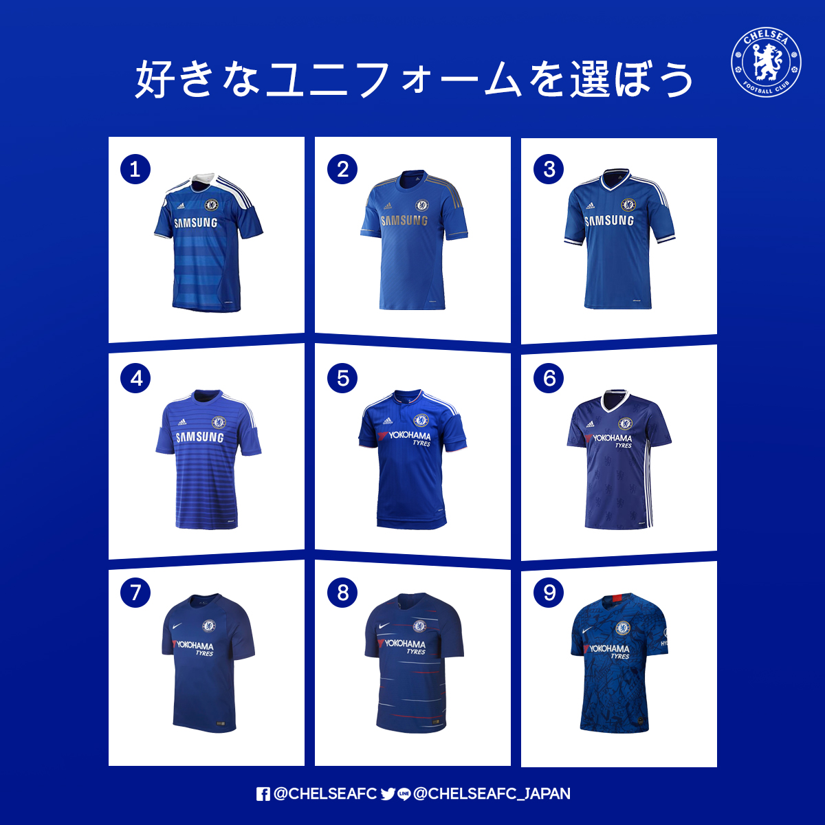 チェルシーfc日本語版 懐かしいものから最新モデルまで 歴代のチェルシーユニフォームが勢揃い 皆さんにとって一番のお気に入りはどれ Cfcjapan